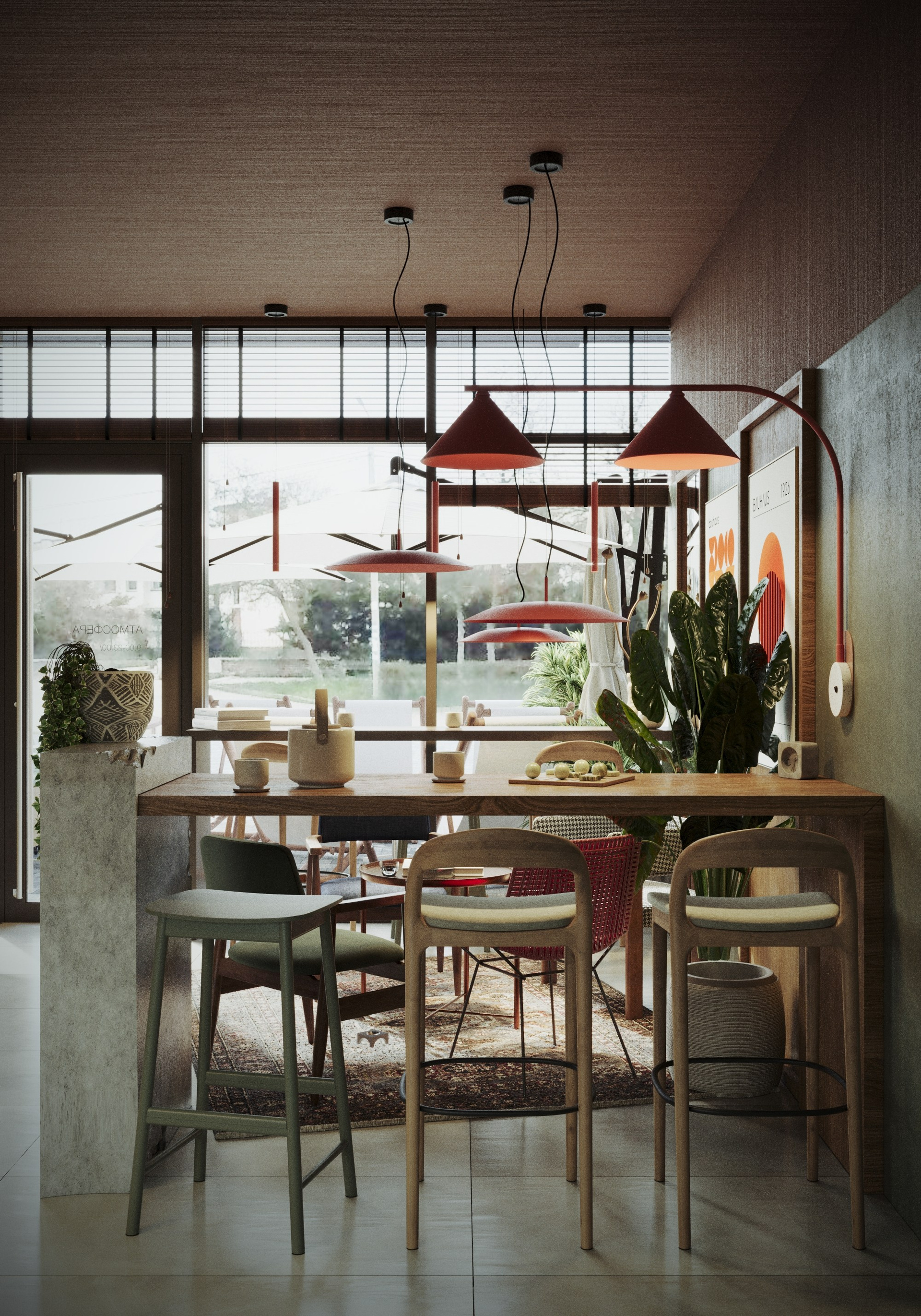 Проект кофейни «Турист», город Евпатория, район Лазурной набережной. Задача этого интерьера заключалась в том, чтобы создать маленькое уютное пространство с простыми и доступными материалами, но интересной идеей. Так как место располагается в районе санаториев, мы решили объединить легкий курортный вайб и добавить ему нотки советского постмодернизма. Пространство рождает атмосферу покоя, теплоты и ностальгии, здесь хочется остаться чуть подольше.