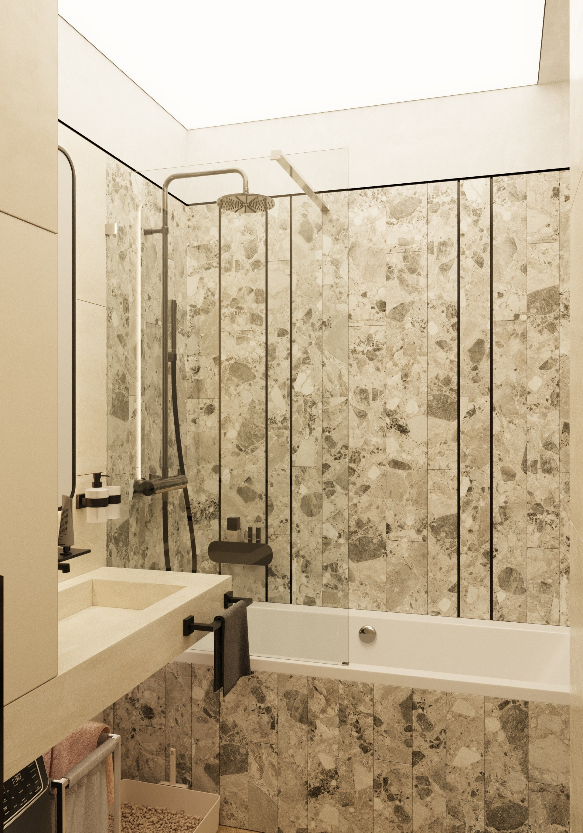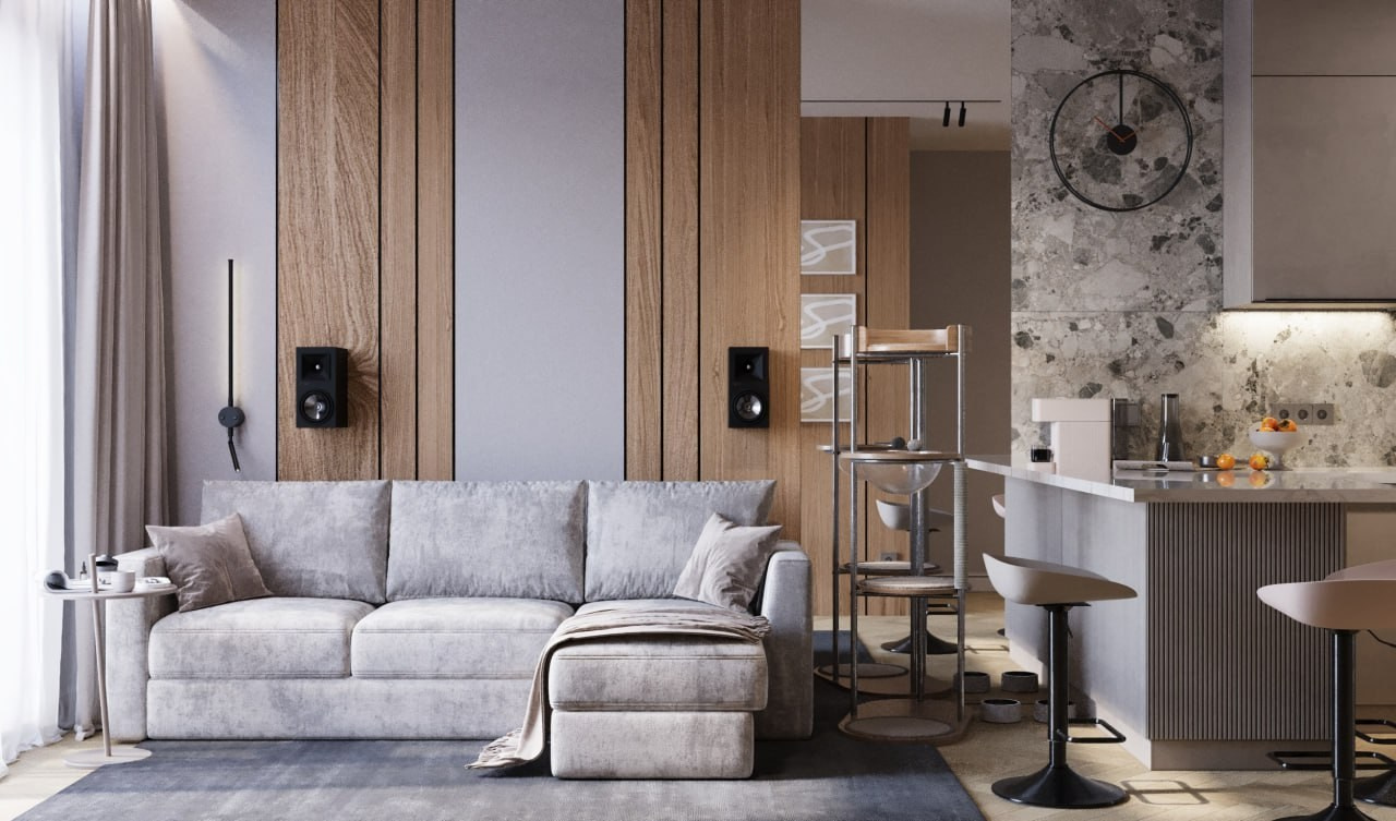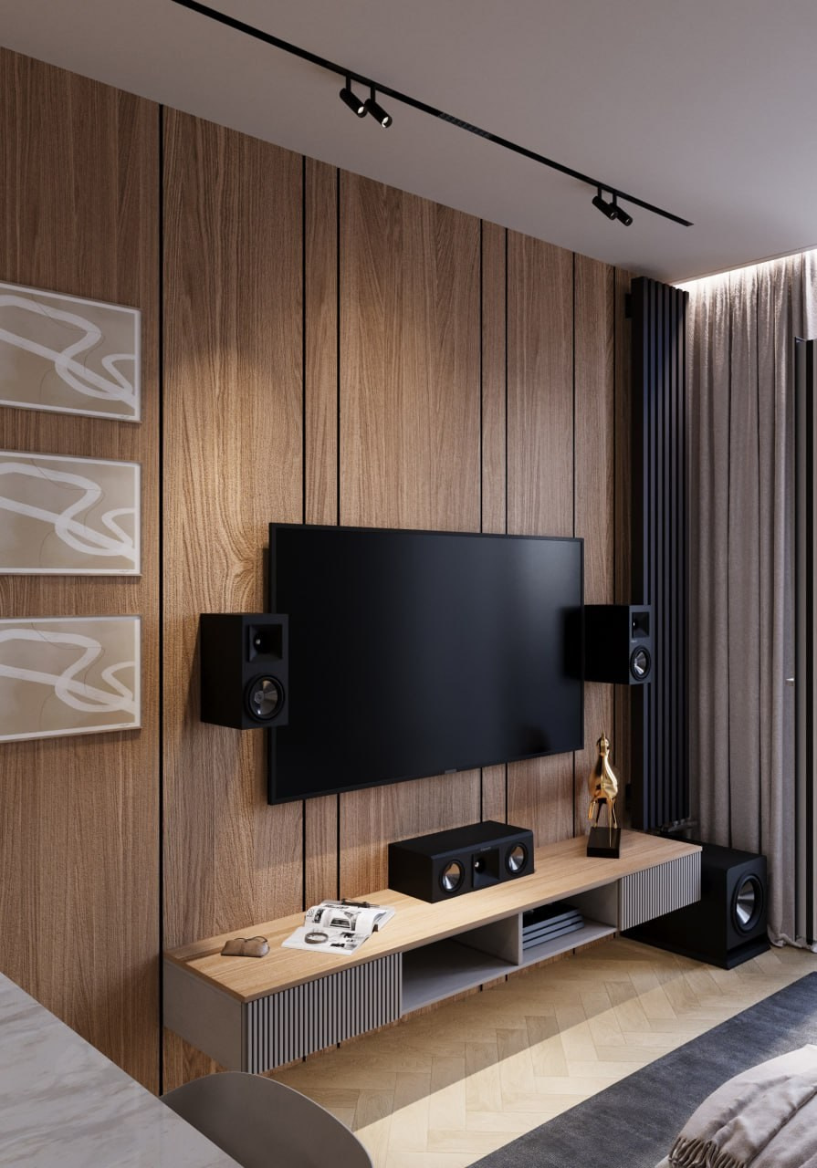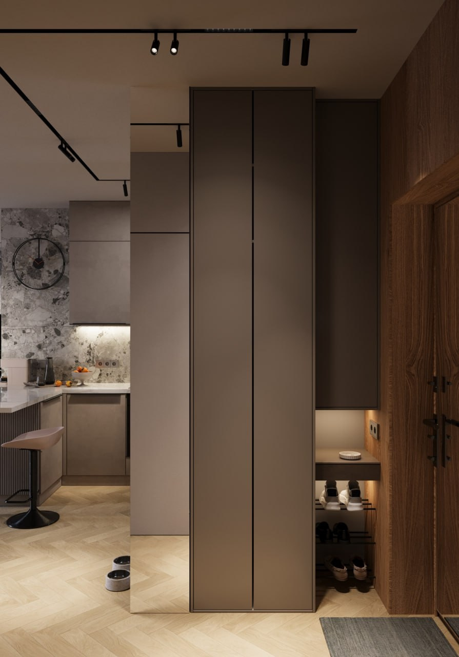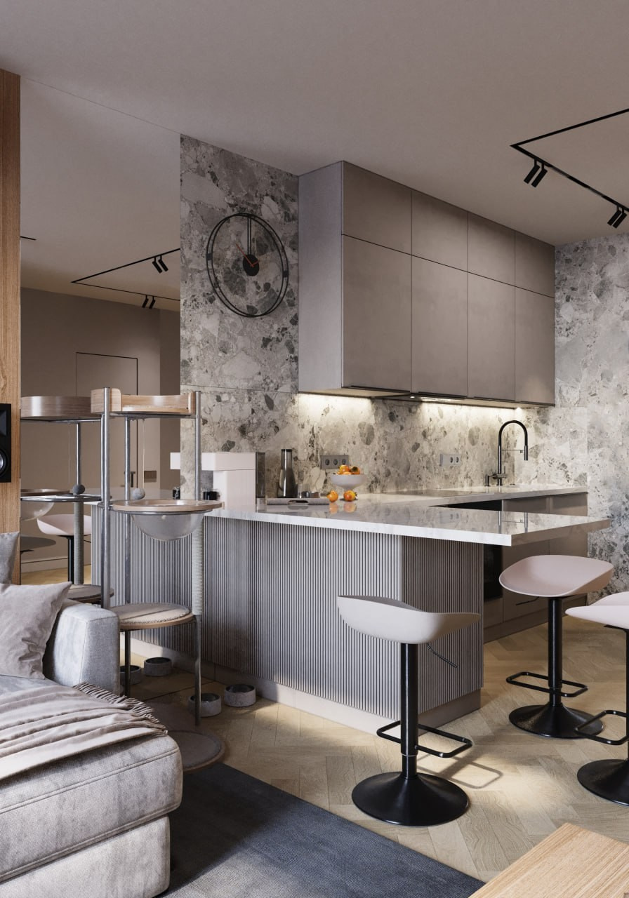 Проект однокомнатной квартиры, г. Евпатории. Этот дизайн-проект выполнен в современном стиле. Минимализма ему придают современные настенные панели, которые скрывают все неровности и делают пространство цельным. Светлые тона, зеркала и стеклянный элементы позволяют наполнить маленькую площадь воздухом и визуально расширить пространство. А натуральное дерево и элементы скалы на стенах наполняют интерьер жизнью и уютом природных элементов. Квартира вышла очень просторной и комфортной для длительного проведения времени.